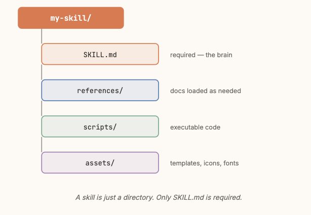 Über die SKILL.md hinaus kann ein Skill-Verzeichnis weitere unterstützende Dateien enthalten, die in einer sauberen Hierarchie organisiert sind: